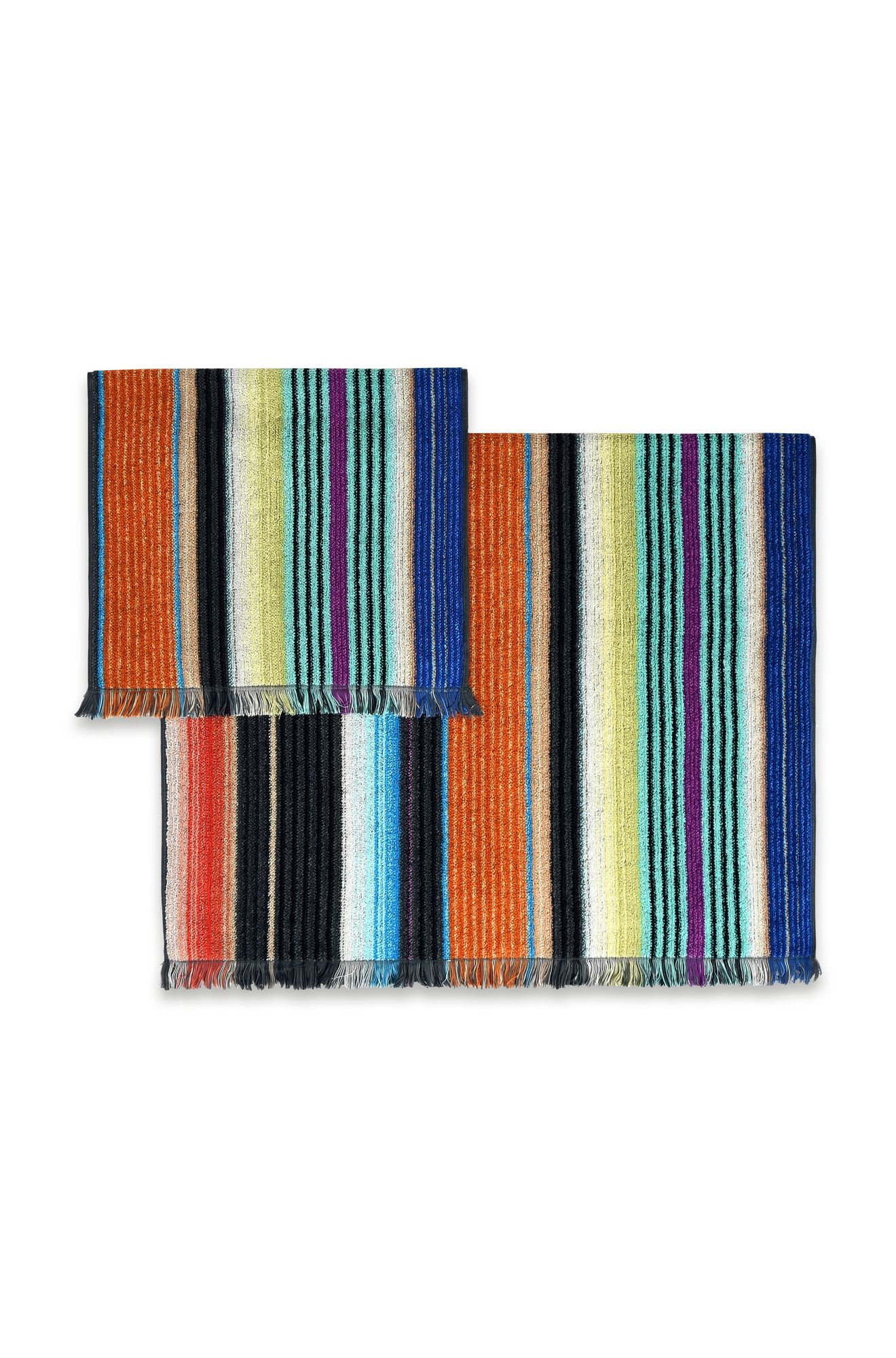 For the set of two premium Viviette towels, Missoni designers chose a simple print of colored stripes in pastel shades. This design creates a wonderful feeling of coziness and comfort, and the softest terry fabric perfectly supports it. Textiles perfectly absorb moisture and are tactilely pleasant.