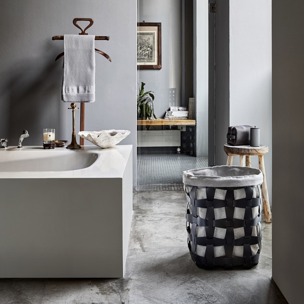 Home » Home accessories » Leather basket with linen insert HOOK white