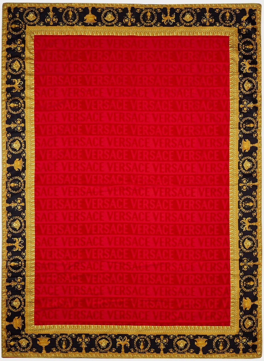 The cozy charm of soft, natural cotton is subtly highlighted in this luxury throw from the BAROCCO&ROBE collection, with its vibrant red color and stylish wide border with gold-tone designs, incorporating the Versace logo.