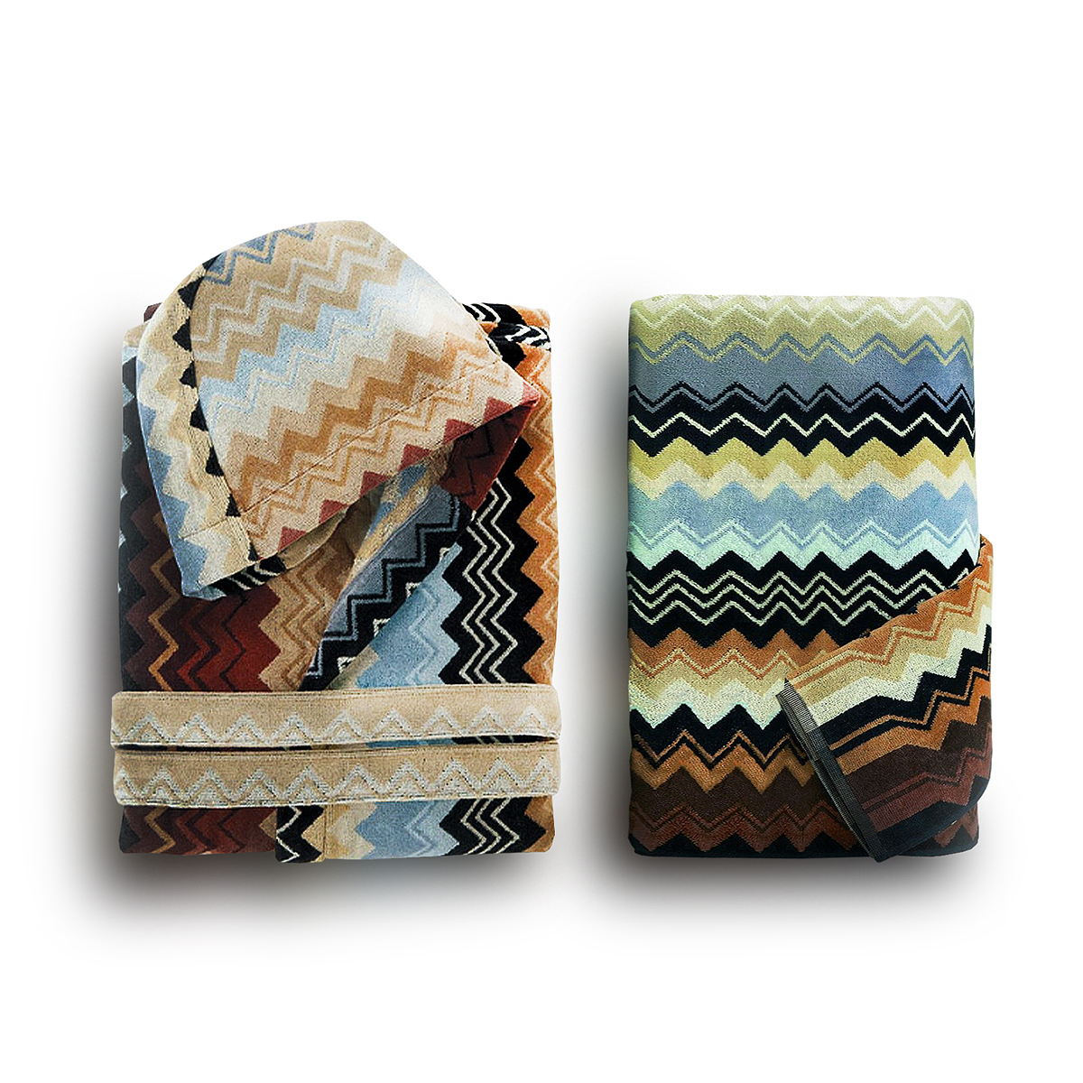 The set consists of a 100x150cm towel and a robe with a hood. Composition: 100% cotton. Country of origin: Italy. Manufacturer Missoni