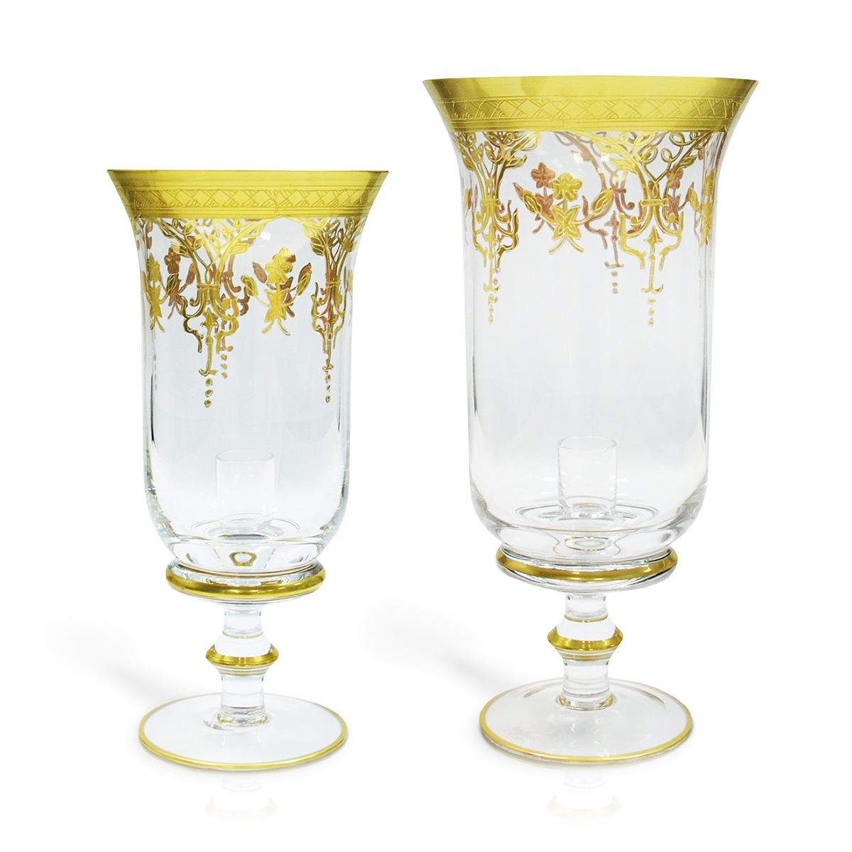The set includes a candlestick 21 cm and 28 cm. Glass. Plating: 24 carat gold. Country of origin: Italy. Manufacturer Griffe