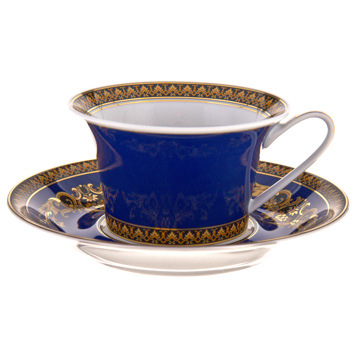 This exclusive Medusa Blue tea pair is cast from premium quality porcelain. Designers of the Versace brand demonstrated in this set the unique expressiveness of blue and gold tones. The noble dark ultramarine background emphasizes the splendor of the complex, shining ornament.