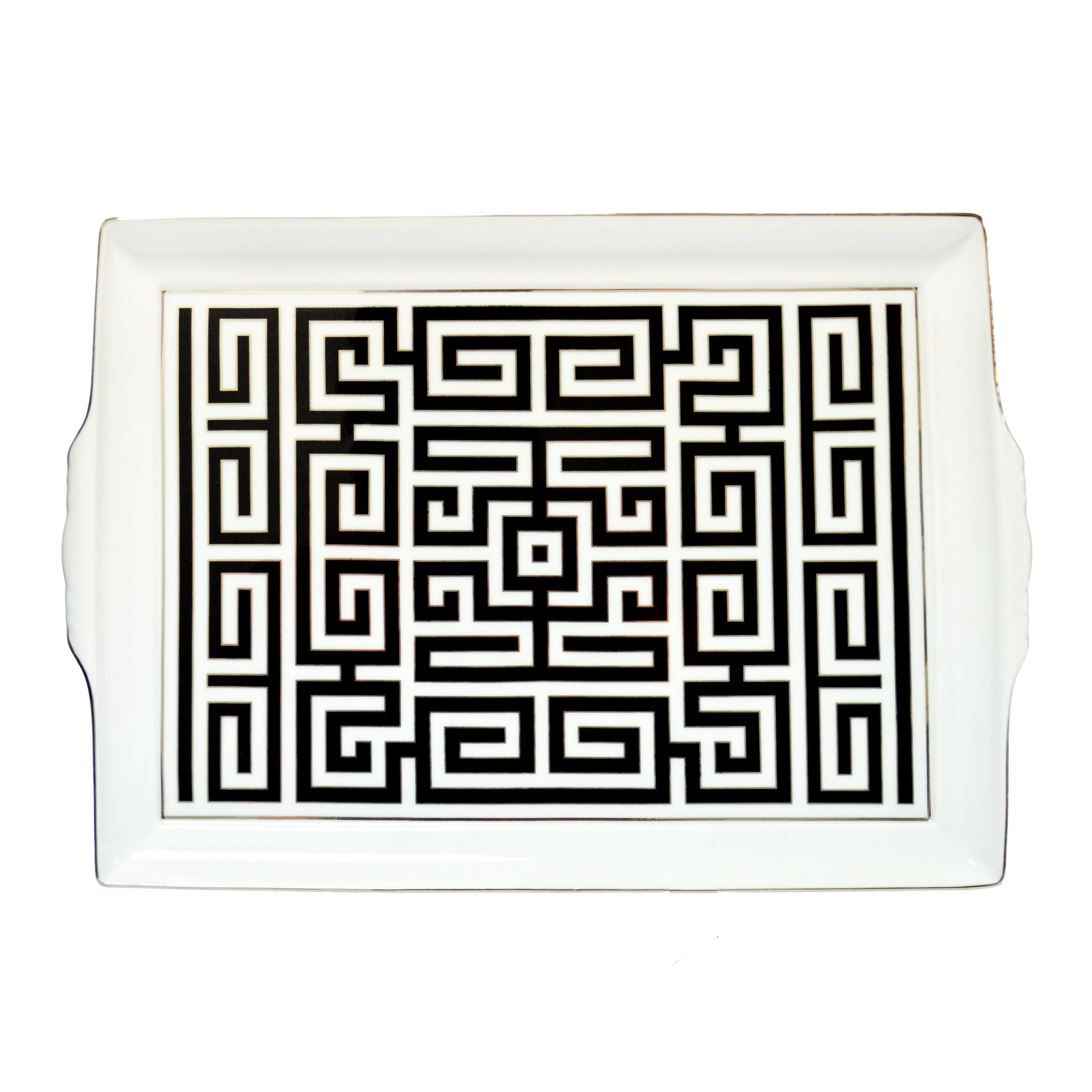 In the elite porcelain tray LABIRINTO NERO from the Richard Ginori tableware collection, everything is subordinated to classical canons. Traditional black and white contrast. Simple geometry. An antique meander that creates a beautiful labyrinth with its lines. Classic decorative techniques have been used to achieve the delightful elegance of the tray.