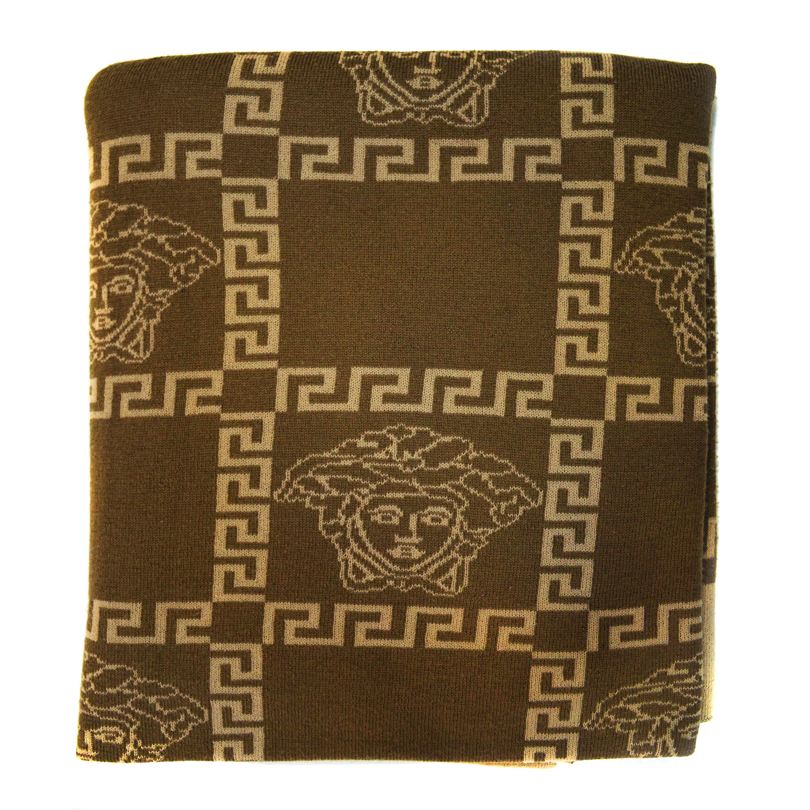 The blanket is double-sided. Composition: 50% wool. 50% acrylic. Size: 150x180cm. Country of origin: Italy. Manufacturer Versace