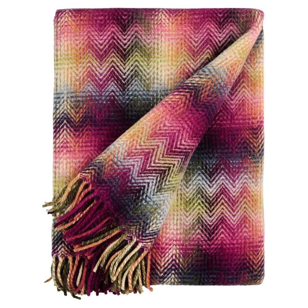 An expensive Montgomery blanket from Missoni will help create a joyful mood in your interior. This effect is achieved through a combination of bright colors, the main one being red. The soft texture and touching fringe give a feeling of comfort. The product is based on wool, with polyamide added for strength.