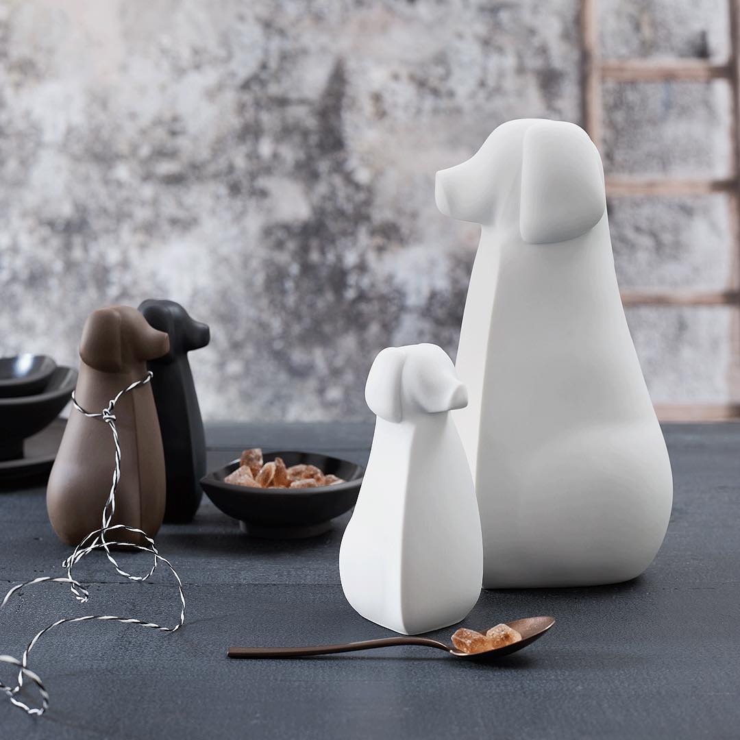 Белая эксклюзивная фигурка от бренда Rosenthal выдержана в актуальном анималистическом стиле, она напоминает силуэт собаки. Более яркого декоративного эффекта можно добиться, используя в интерьере комозицию — несколько фарфоровых статуэток разных размеров или цветов из коллекции Murphy.