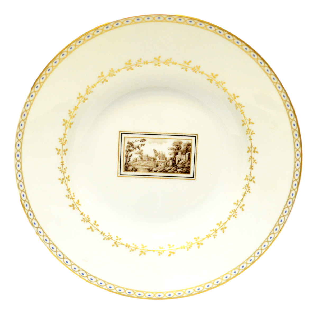 Коллекция фарфоровой посуды FIESOLE от бренда Richard Ginori напоминает серию пейзажных миниатюр, изображающих очаровательные улочки небольшого флорентийского городка. Сходство с живописными работами подчеркнуто золотым обрамлением рисунков. Эксклюзивная тарелка относится к суповым.