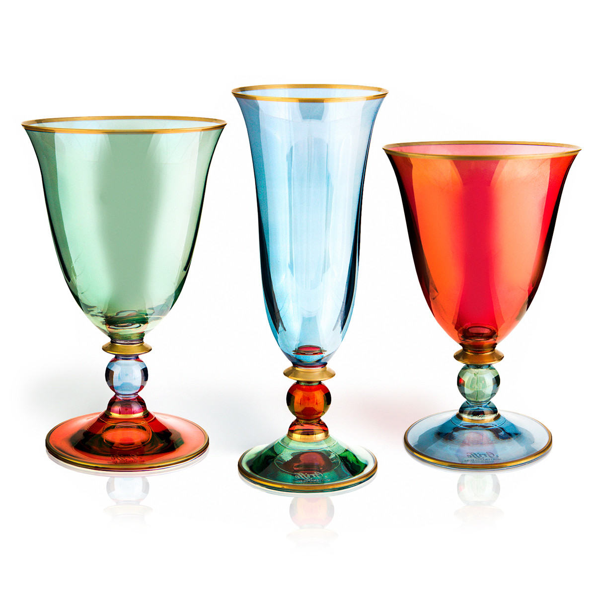კომპლექტში შედის: ღვინის ბოკლები 6ც., წყლის 6ც. და შამპანურის 6ც.