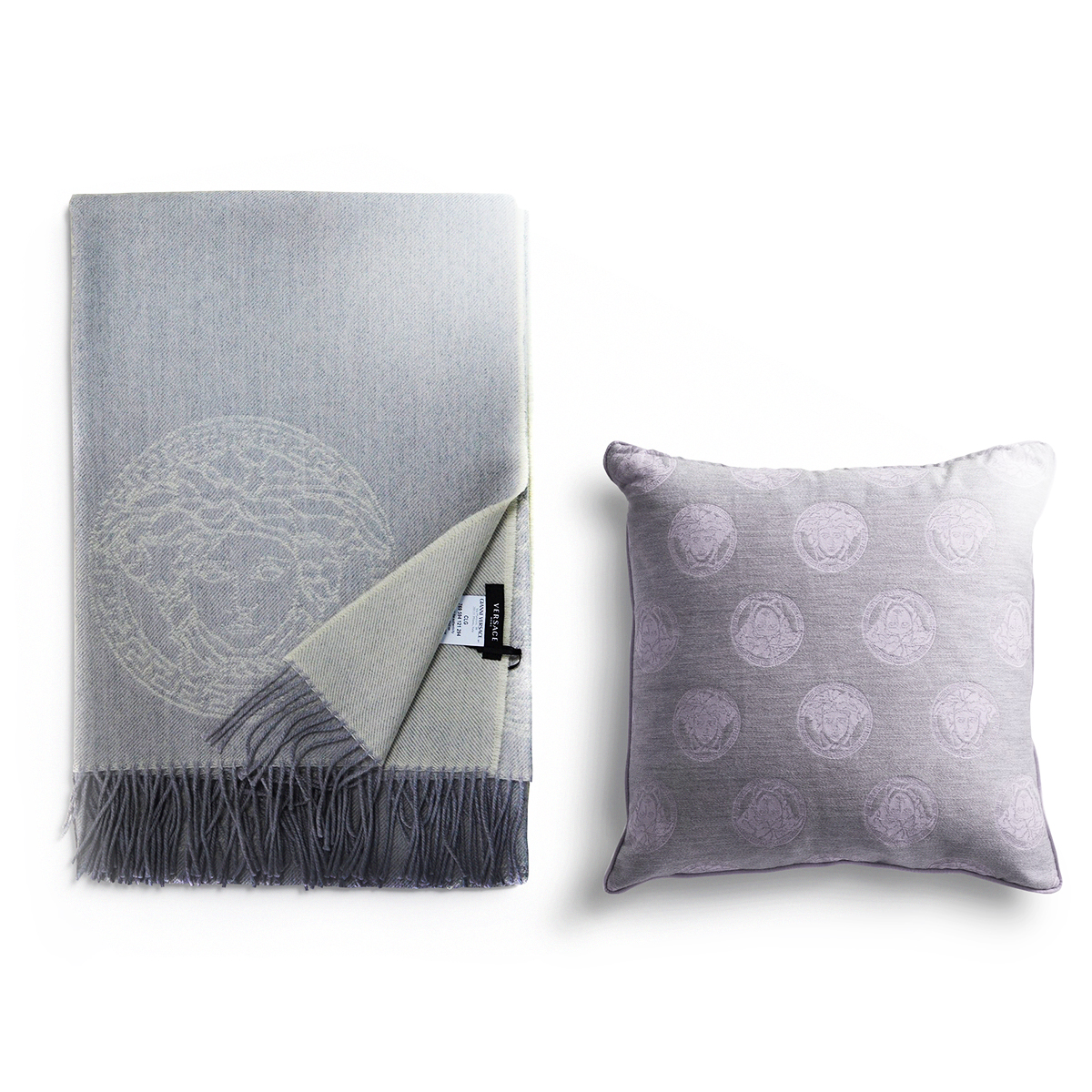 პლედი და დეკორატიული ბალიში ნაცრისფერი