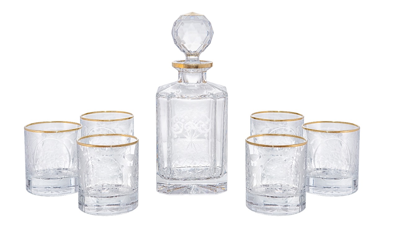 ბროლის გრაფინი და ჭიქა 6 ც.